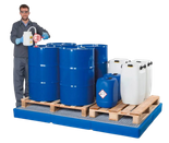 ( ilość produktów: 358 )Wanna wychwytowa z polietylenu (PE) na 6 beczek, z kratą cynkowaną, 2200x1500x150 72279400